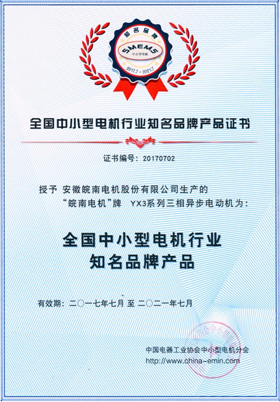 會(huì)上,皖南電機(jī)被授予“全國(guó)中小型電機(jī)行業(yè)知名品牌產(chǎn)品”和“中小型電機(jī)分會(huì)工作先進(jìn)單位”稱號(hào),并分別頒發(fā)了榮譽(yù)證書。
